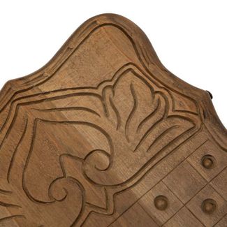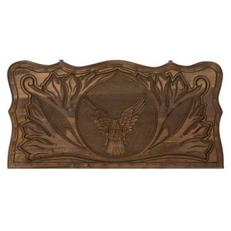 Внешняя лицевая сторона доски украшена изображением ястреба, готовящегося к нападению на жертву. Тыльная внешняя сторона сделана под игровое поле для шахмат. Каждая деталь, высеченная мастером, впечатляет своей реалистичностью и детализацией. Сама доска, а также игровые фишки вскрыты несколькими слоями лака, который не придает дополнительный декоративный эффект, элегантный блеск, но и делает изделие более долговечным и устойчивым к механическим повреждениям.