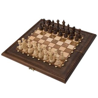 Набор ручной работы для игры в нарды и шахматы, изготовленный известным армянским мастером. Главным украшением набора является фигурная резная доска с высеченным на ней изображением ястреба – одной из самых хищных и величественных птиц. Изготовлена доска из натурального массива бука – прочной и долговечной древесины, обладающей великолепным внешним видом и уникальной фактурой.