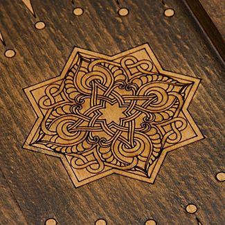 Внутреннее игровое поле оформлено красиво и со вкусом: узор по центру и ячейки с рифленым декором.