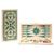 В набор для игры в нарды средние «Чертики зеленые» входит игровая доска, 30 фишек и 2 кубика. В этом комплекте игры доска сделана из светлого дерева. Внешняя сторона доски расписана зелёным узором. На внутренней стороне доски зеленые треугольники и круговой орнамент в центре. Зеленый рисунок на фоне светлого дерева выглядит гармонично и успокаивающе. Такой дизайн поможет снизить накал страстей за игрой.