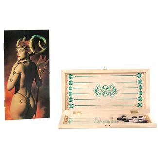 Набор для игры в нарды «Королева эльфов» не оставит вас равнодушным. Коробка для игры оформлена в стиле фентези. Её украшает цветное изображение прекрасной эльфийской королевы. Картинка яркая, притягивающая к себе внимание.