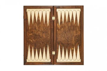 Утонченный, коллекционный набор для игры в нарды и шашки. Игровая доска из бука продемонстрирует всю красоту структуры дерева. Одна половина внешней стороны доски украшена золотой росписью в виде цветка, на второй стороне расположились шашечные клетки. Внутренняя сторона доски представляет собой поле для игры в нарды. В набор входят по 16 темный и светлых фишек и два кубика. Фишки имеют подложку, поэтому будут отлично скользить и не царапать поверхность игрового поля. Набор упакован в чехол для предотвращения повреждений и лучшей сохранности. Ручной труд мастера создал уникальную красоту из натуральных материалов, добавив в произведение восточной роскоши.