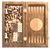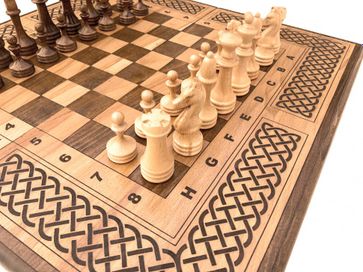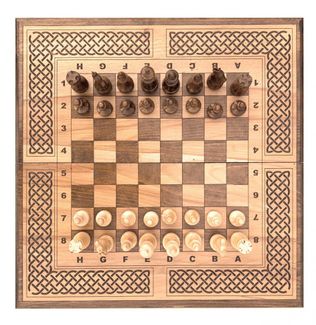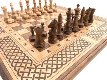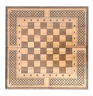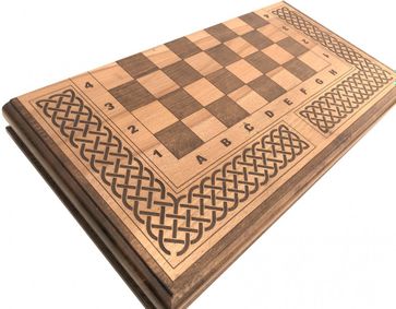 «Модерн 3» – современный набор классических настольных игр, состоящий из шахмат и нард. Выполненный из натуральной буковой древесины высокого качества, он украшен изящными фактурными узорами, выполненными в технике ручной резки.