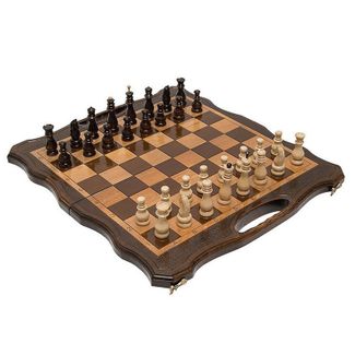 Приобретая данный комплект вы получаете сразу две игры – на внешней стороне находится поле для шахмат, а изнутри – ячейки для нард. Оба варианта появились очень давно и обладают собственной историей. Грани доски выполнены в резном варианте с привлекательными изгибами, а на одной стороне предусмотрена удобная ручка. С ее помощью значительно облегчается транспортировка. Рекомендуется при длительном хранении и перевозки использовать комплектный чехол из мягкой ткани, который обезопасит от вибраций, ударов и грязи.
