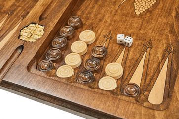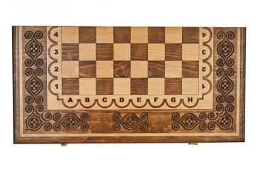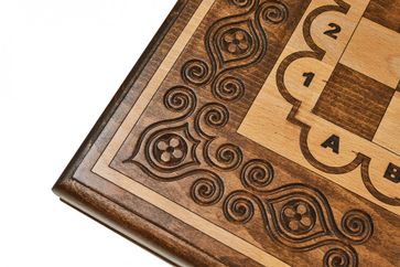 «Аида» – набор 3-в-1, состоящий из традиционных настольных игр, история которых насчитывает уже не одно столетие. Доска сделана из буковой древесины высокого качества и украшена красивыми резными узорами. Части доски, покрытой защитным глянцевым лаком, скреплены между собой медной фурнитурой, устойчивой к износу.