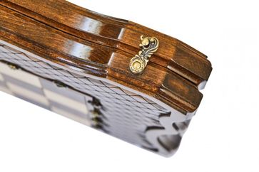 Набор классических настольных игр «Эндшпиль 2» нарды и шахматы будет рад иметь в своей коллекции каждый поклонник этого вида развлечений. Изысканный и элегантный, этот набор впечатлит не только внешним видом, но и безупречным качеством исполнения. Изделие выполнено из благородной буковой древесины известным армянским мастером. Внешнюю сторону доски, оформленную в технике шелкографии, украшает фактурная кромка для шахматного поля и металлические вставки с цифрами и буквами для его разметки. Внутренняя часть украшена классическим абстрактным узором.