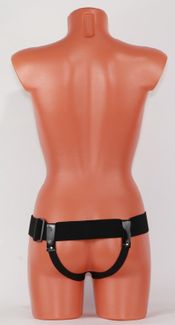 Трусики выполнены из лакированного кожзама черного цвета с элементами из черных эластичных резинок, надежно фиксирующих изделие на теле. Трусики-джоки обеспечивают доступ к интимным зонам. Размер удобно регулируется, подойдет на 42-46. Максимально комфортный аксессуар разнообразит любую БДСМ игру. Диаметр отверстия для страпона - 4 см.<br> Ширина резинки на поясе - 5 см. None
