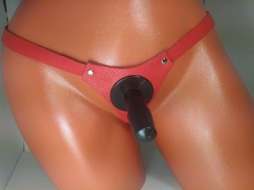 Трусики выполнены из натуральной кожи красного цвета. Спереди крепится штырек харнесс для насадок (входит в комплект). Изделие фиксируется ремнями и пряжками, позволяющими подобрать нужный размер (S-L). Аккуратные, стильные трусики помогут воплотить задуманное в реальность. Ширина ремешков - 2 см. None