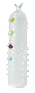 Закрытая белая насадка на пенис Crystal Sleeve с шариками и усиками - 14 см. (140706)