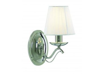 Материал арматуры:Металл, Материал плафона:Ткань на ПВХ-основе, Цвет арматуры:Хром, Цвет плафона:Белый, Ширина (Диаметр), см:13, Высота, см:26, Площадь освещения, м.кв.:2, Количество ламп, шт:1, Тип цоколя:E14, Мощность, Вт:40W None