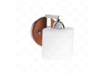 Материал арматуры:Металл, Материал плафона:Стекло, Цвет арматуры:Хром/Коричневый, Цвет плафона:Белый, Ширина (Диаметр), см:13, Высота, см:13, Длина, см:16, Площадь освещения, м.кв.:3, Количество ламп, шт:1, Тип цоколя:E14, Мощность, Вт:60W, Дополнительная информация:Металлическое основание, декорированное под дерево None
