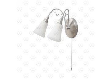 Материал арматуры:Металл, Материал плафона:Стекло, Цвет арматуры:Хром, Цвет плафона:Белый, Ширина (Диаметр), см:24, Высота, см:20, Длина, см:26, Площадь освещения, м.кв.:6, Количество ламп, шт:2, Тип цоколя:E14, Мощность, Вт:60W None