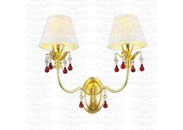 Материал арматуры:Металл, Материал плафона:Текстиль, Цвет арматуры:Золото, Цвет плафона:Белый, Ширина (Диаметр), см:26, Высота, см:42, Длина, см:40, Площадь освещения, м.кв.:6, Количество ламп, шт:2, Тип цоколя:E14, Мощность, Вт:60W, Дополнительная информация:Металлическое основание, покрытое сусальным золотом. Декоративные подвески из стекла. None