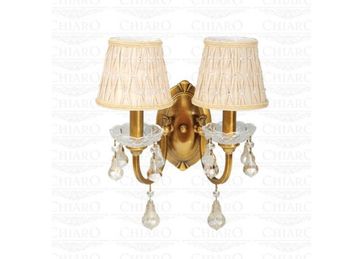 Материал арматуры:Металл, Материал плафона:Текстиль, Цвет арматуры:Латунь, Цвет плафона:Белый, Ширина (Диаметр), см:28, Высота, см:21, Длина, см:32, Площадь освещения, м.кв.:4, Количество ламп, шт:2, Тип цоколя:E14, Мощность, Вт:40W, Дополнительная информация:Декоративные элементы из хрусталя None