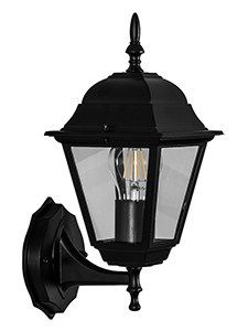 Светильник садово-парковый, Feron Классика, 100 Вт, E27, 230 В, IP 44, цвет черный, 4-х гранник, на стену вверх, 185х215х400мм None