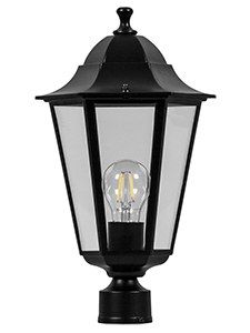 Светильник садово-парковый, Feron Классика, 100 Вт, E27, 230 В, IP 44, цвет черный, 6-и гранник, на столб, 195х195х360мм None