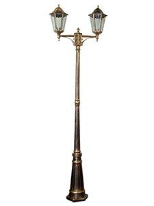 Светильник садово-парковый, Feron Классика, 2х100 Вт, E27, 230 В, IP 44, цвет черное золото, 6-и гранник, столб большой, 590х195х2200мм None