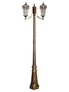 Светильник садово-парковый, Feron Кастелло, 2х60 Вт, E27, 230 В, IP 44, цвет черное золото, 4-х гранник, столб большой, 560х150х2020мм None