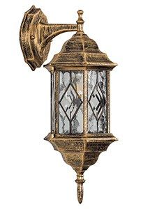 Светильник садово-парковый, Feron Сорренто, 60 Вт, E27, 230 В, IP 44, цвет черное золото, 6-и гранник, на стену вниз, 165х200х430мм None