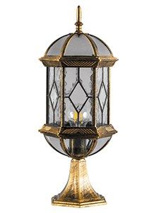 Светильник садово-парковый, Feron Венеция, 60 Вт, E27, 230 В, IP 44, цвет черное золото, 6-и гранник, на постамент, 205х180х500мм None