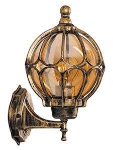 Светильник садово-парковый, Feron Версаль, 60 Вт, E27, 230 В, IP 44, цвет черное золото, шар, на стену вверх, 180х200х320мм None