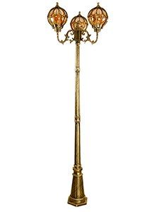 Светильник садово-парковый, Feron Версаль, 3х60 Вт, E27, 230 В, IP 44, цвет черное золото, шар, столб большой, 560х560х2200мм None