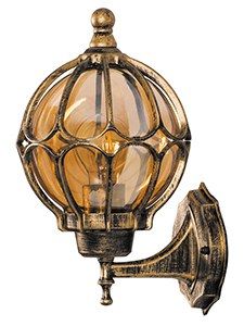 Светильник садово-парковый, Feron Версаль, 60 Вт, E27, 230 В, IP 44, цвет черное золото, шар, на стену вверх, 220х260х380мм None