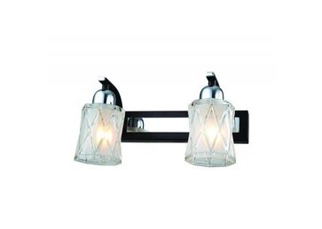 Материал арматуры:Металл, Материал плафона:Стекло, Цвет арматуры:Хром/Черный, Ширина (Диаметр), см:17, Высота, см:13, Длина, см:30, Количество ламп, шт:2, Тип цоколя:E14, Мощность, Вт:40W None