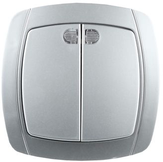 Выключатель СВЕТОЗАР "АКЦЕНТ" двухклавишный в сборе, с подсветкой, цвет серебристый металлик, 10А ~250В