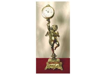 Современная разработка в манере образцов эпохи Возрождения. Вся композиция состоит из нескольких частей : на постаменте – Амур, парящий в воздухе;на его голове – часы. Амур - римское божество любви в образе красивого шаловливого мальчика с крылышками, с луком и стрелами, которые он пускает в богов и людей.часы, часы каминные, часы настольные, часы настенные, напольные часы, бизнес сувениры, изделия из бронзы, дорогие подарки, подарки сувениры, часы кабинетные None
