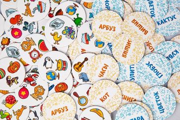 Причем, картинок изображено 3 штуки, а вот слово лишь одно. Кстати, производитель Нескучные игры предусмотрел сразу 2 сложности, опознать которые можно по цвету карт: