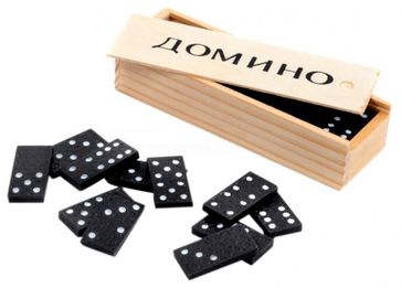 - Домино (пластиковые фишки) в деревянной коробке 14x5 см (P00070) по выгодной цене 534 р. руб.;