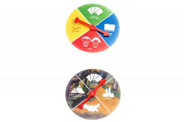 На планшете имеется стрелочка, которую будет крутить каждый из участников по очереди. Она указывает на задание, которое предстоит выполнить, чтобы продвинуться дальше: