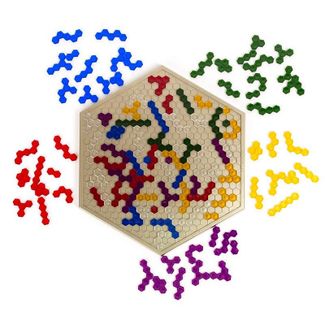 Выбрав цвет, каждый игрок получает по 18 фигурок соответствующей расцветки. Фигурки эти бывают различных конфигураций, кроме цвета их объединяет то, что сделаны из скрепленных шестигранных сегментов. Играть в эту настолку могут от двух до шести человек. Если играют всего двое, каждый себе берет по 2 набора цветов.