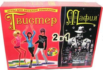 Для детей от 4лет. Беспроигрышный вариант для веселой вечеринки — игровой комплект «Твистер+Мафия». Набор включает игровое поле с цветными кругами, рулетку со стрелкой и карты для Мафии. Если гости засиделись, подвижная игра Твистер разогреет и взбодрит. Во время каждого хода ведущий раскручивает стрелку на рулетке и определяет, куда игрок должен поставить ногу или руку. Постепенно темп игры убыстряется и конечности участников причудливо сплетаются. Выигрывает тот смельчак, который сможет не упасть. Мафия — это занимательный психологический эксперимент, в ходе которого игроки определяют членов мафиозного клана. Состав игры: