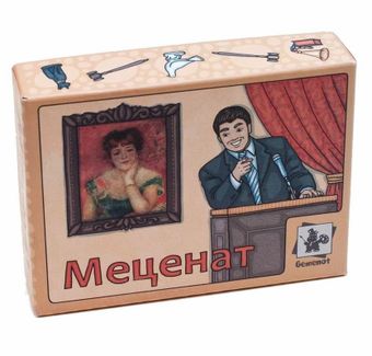 Настольная игра «Меценат» позволит потренироваться в торгах, но закрытых, когда все практически ничего не знают друг о друге. Это компанейское развлечение, поэтому и играть в него намного интереснее вместе с друзьями. Особенно, если они азартные люди, и в процессе раунда будут стараться получить как можно больше. Готовы проявить свои лучшие торговые умения, а также попробовать сыграть партию с Фортуной? В мире бизнеса никогда нельзя экономить В настольной игре «Меценат» участники ведут бои за разнообразные шедевры мирового искусства. Все карточки складываются в центре, а у игроков на руках находятся карты Ставок разных цветов у каждого. Теперь открывается лот, за который и будет идти борьба. Участникам надо оценить его, и сделать Ставку, но в закрытом виде, чтобы никто другой её не видел. Когда все это делают, они открываются, и тот, кто рискнул большим и становится победителем. Сложность заключается в том, что Ставки проигравших сгорают, и у них остаётся меньше возможностей приобрести следующие лоты. Кроме того, у каждого на руках имеются специальные карточки: