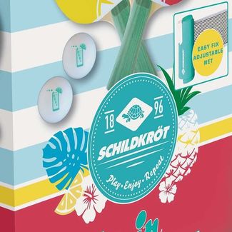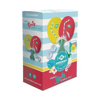 Набор для настольного тенниса DONIC SPIN, отличный выбор для активного отдыха. В комплект входит 2 ракетки, с красным и жёлтым покрытием. На покрытие нанесен принт белого цвета. Так же в набор входят 2 белых мячика с зелёным принтом. В наборе также есть складная сетка, держатели сетки- мятного цвета. Набор отлично подойдёт для выездного отдыха на природу со всей семьёй или друзьями. Толщина губки 1 мм Ракетки 2 шт. Сетка в комплекте Шарики 2 шт. Размер упаковки Вес Бренд Donic Schildkrot Страна производства Китай None