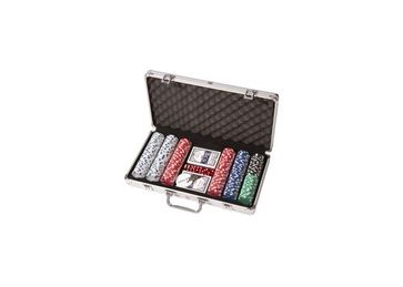 Состав: – 300 фишек по 11,5 г, без номинала – 2 колоды бумажных карт – 5 кубиков – кнопка дилера – ключи от кейса – металлический кейс с шильдой для гравировки