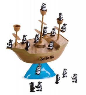 Что в коробке 1 корабль с тремя мачтами 16 отчаянно храбрых моряков 1 подставка в виде морской волны (из двух частей) Правила игры Как играть Игроки ходят по очереди, выставляя на корабль по одному пингвину. Как только хотя бы один пингвин упадёт за борт во время тряски, игра завершается. Победителем объявляется игрок, который ходил перед тем, кто неудачно раскачал корабль. None