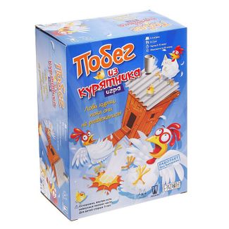 Они соответствуют цветам ваших подопечных. В зависимости от того, какой цвет выпал, берется одна из тех 3, стоящих в центре, и закидывается внутрь курятника и сразу же опять кидается кубик. Продолжается так, пока не окажется, что подходящей курочки нет и, в этом случае, за дело берется следующий. Зачем кидать куриц в прыгающее здание После того, как курятник прыгнет, все те, кто сидел в нем, разлетятся в разные стороны. Игроки должны поймать по 2 штуки, а остальные считаются сбежавшими. Как раз этого они и хотели, почему и полезли внутрь – улететь на свободу. Цель участников состоит в спасении всей своей стаи. Простое развлечение для детишек Как видно, Побег из курятника очень простая настолка, но при этом увлекательная и интересная. Малышам всегда нравится, когда что-то хлопает, взрывается и шумит, создавая вокруг Великий Беспорядок. Игра способствует развитию таких важных навыков, как – мелкая моторика, внимательность, координация движений. Но и основная задача – веселить всех выполняется на все сто процентов. None