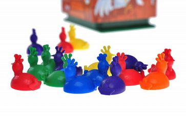 Курятник – место, где курочки могут спокойно отдыхать после еды и прогулки. Но только не в этой игре, здесь – это обезумевшее здания, готовое в любую секунду присесть и взорваться. Хотя оказалось, что это может быть полезным, если подойти к вопросу с умом. Наш рейс вылетает сейчас Участники, которых может быть максимум четыре человека, делят всех курочек между собой. Не бойтесь, они не кусаются, ведь это пластиковая игрушка. В середину игровой поверхности устанавливается царь курятник. Далее нужно выбрать из своей «кучки» 3 несушки разного цвета и положить поближе к центру. Нажимаем на крышку курятника, заставляя его присесть. Как только он начинает подниматься, первый игрок выбрасывает кубик, грани которого окрашены в различные цвета: