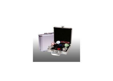 Покер в алюминиевом кейсе100 фишек200 номерных керамических фишек(50 красных фишек номиналом 5, 50 белых фишек номиналом 10, 25 зеленых фишек номиналом 25, 25 черных фишек номиналом 50, 50 оранжевых фишек номиналом 1) , 14,00гр ● 2 колоды пластиковых карт ● 5 кубиков &# None