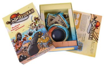 В начале партии каждый участник собирает свой корабль из нескольких кусочков и ставит их друг напротив друга. Выбирается первый игрок, который и осуществляет залп из орудия. Для этого используются ядра-фишки, которые нужно «запульнуть» в соперника, пытаясь повредить хотя бы 1 кусочек корабля. Попали, убрали 1 палубу и ход переходит противнику. Так продолжается до тех пор, пока чей-то фрегат не будет полностью уничтожен. А если вы еще и попадете в трюм с сокровищами, то тогда получите приятное дополнение.