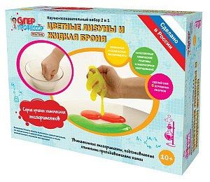 Набор "Цветные лизуны и Жидкая броня" из серии лучших химических экспериментов предназначен для демонстрации необычных физических и химических свойств веществ.