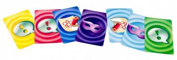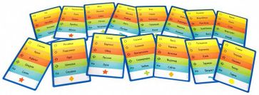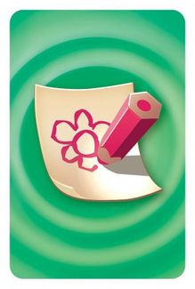 В коробке есть колода двухцветных карт. Синие карты подойдут для деток до 10 лет, розовые содержат более сложные задания и рассчитаны на возраст от 10 лет. После того, как карты вытянуты и выбрано слово, игрок определяется, каким способом он будет его показывать: