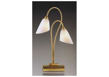 Настольная лампа Hedys Цвет: Золото Плафон: Белое стекло Источники света: 2x40W G9 (лампочки в комплекте) Напряжение: 220V Высота: 37см Ширина: 23см
