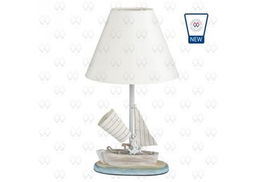 Материал арматуры:Дерево, Материал плафона:Текстиль, Цвет арматуры:Белый, Цвет плафона:Белый/Голубой, Ширина (Диаметр), см:23, Высота, см:38, Длина, см:23, Площадь освещения, м.кв.:3, Количество ламп, шт:1, Тип цоколя:E27, Мощность, Вт:60W, Дополнительная и None