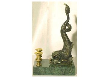 Морские чудовища, часто изображали их в старинных гравюрах, гигантского размера. Суда пропадали в их утробе навсегда. Наши мастера использовали мифические образы в качестве украшения подставки для ручек, а также как символ для людей, родившихся под знаком Рыб.Письменный прибор "Рыбка" (малая, змеевик), сувениры, подарки сувениры, магазин сувениров, бизнес сувенир, русские None