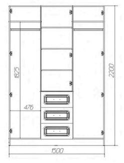 Шкаф 3-х створчатый с ящиками и полками в центре, и штангами по бокам