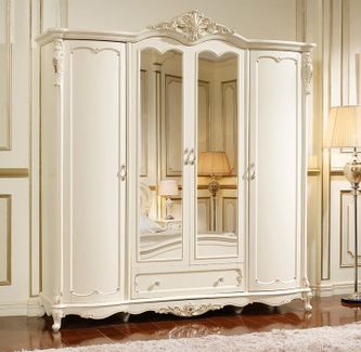 Шкаф 4-дверный с зеркалами "Глория" FF6093, MK-2707-WGРазмер: 2190х650х2340 ммМатериал: Массив гевеиЦвет: Слоновая кость с золотом Минимальная сумма заказа 1000 рублей. Возможен самовывоз.